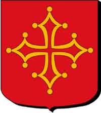 et voici le blason de Guillaume de GRIMOARD, le Bienheureux pape Urbain V , photographié dans l'église de Bédouès (Lozère) qui contient le tombeau de ses parents. De nombreux lozériens cousinent avec lui par son frère Etienne.